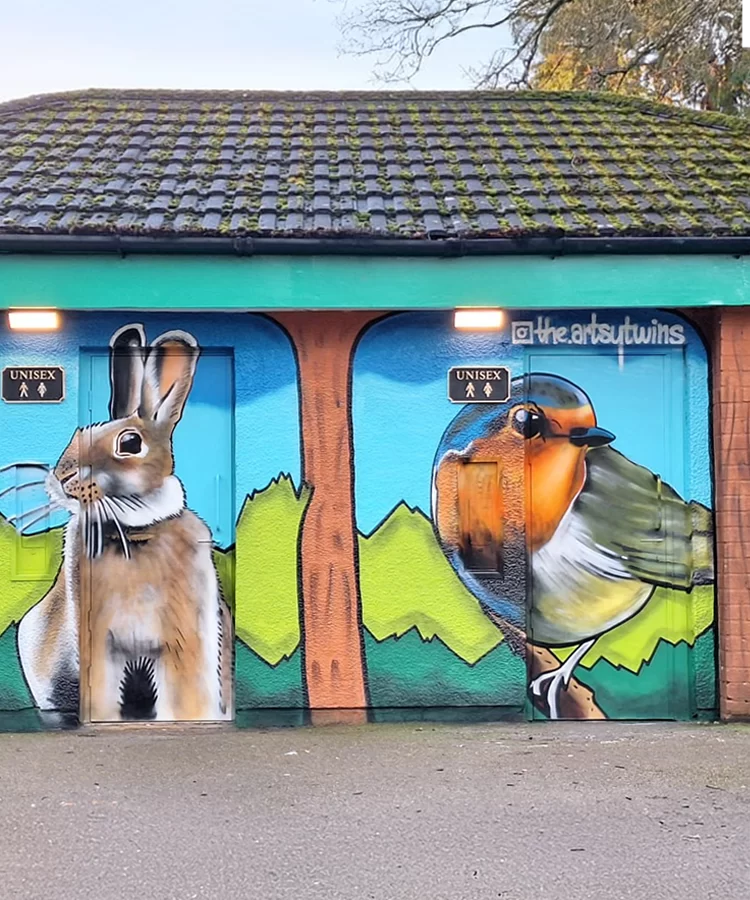 "3 different coloured doors installed"